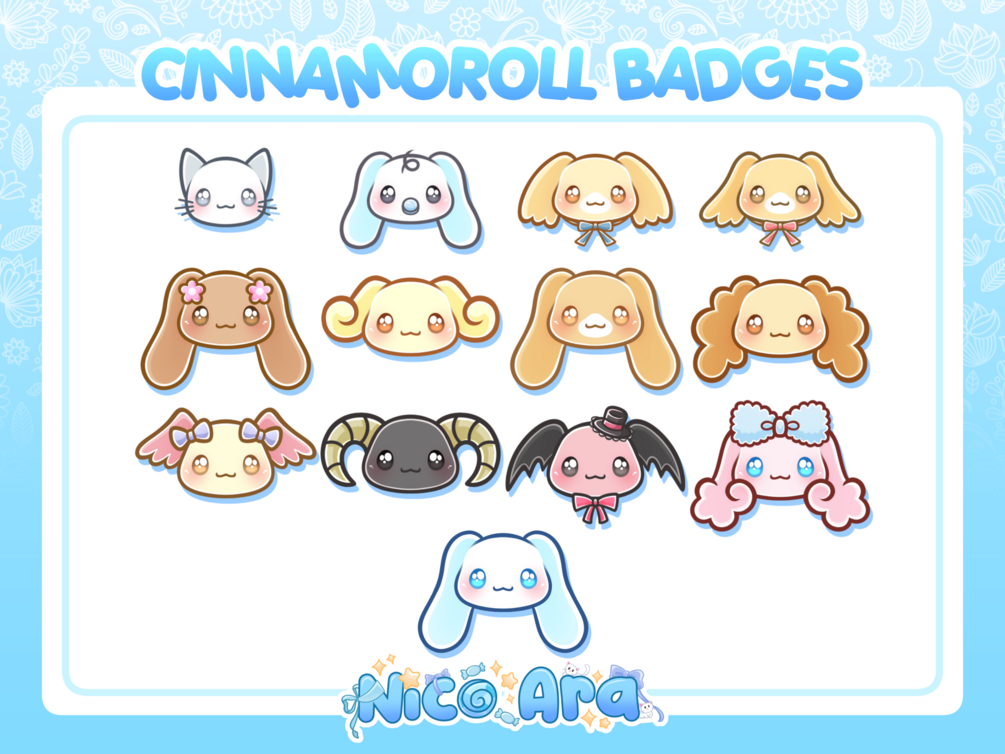 13 Cinnamoroll badges for you to use in your Twitch Channel or Discord Server!